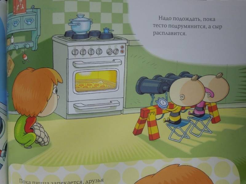 Тату и Пату гостят у Веры. Они проголодались, но на кухню идти боятся: кажется, там много опасных предметов. Да и готовить они пока не умеют... Но научиться не так уж и сложно! Вера знает, как обращаться с электроплитой, умеет выбирать нужные продукты и готовить с помощью рецепта. До ужина друзья успеют замесить тесто, приготовить начинку, испечь пиццу и изучить правила поведения за столом. Они познакомятся со множеством кухонных предметов, узнают названия приправ, научатся делать уборку на кухне и даже сервировать стол! Не забывая при этом шалить и веселиться. Ведь вместе веселее и готовить, и учиться, и шутить. И, конечно же, ужинать!