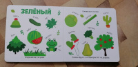 Квадратная картонная книга. На каждом развороте нарисованы картинки определённого цвета. Все картинки подписаны. Качество книги отличное. Книга в активном пользовании уже несколько месяцев, углы целые, картон без замятий. Приятная на ощупь. Открываю определённый цвет и спрашиваю ребёнка Где зелёный огурец, где зелёная...