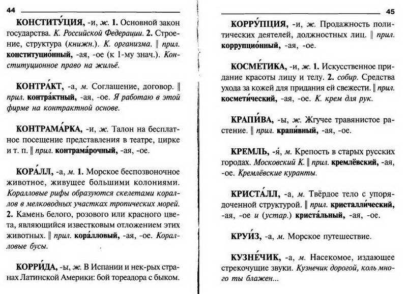 Это словарик, который истолковывает, объясняет значение слов. Это, конечно, не толковый словарь Даля или Ожегова. Это именно словарик. Он содержит всего 500-600 слов. Как и в настоящем словаре, он составлен по алфавиту, в словах указывается ударение. Существительные даются в именительном падеже единственного числа. Глаголы – в неопределенной форме. Во многих словах приводятся примеры использования. Сыну словарь понадобился во 2 классе. Пользуемся им уже 2 года и очень довольны. Он с тонкими...