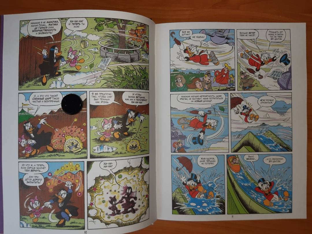 Книга представляет 7 частей странствий Скруджа, формат повторяет размеры комиксов о Дональде. Качественная матовая печать, книга яркая, интересная, в коллекцию!