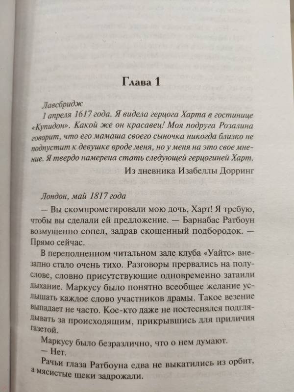 Скромную начинающую писательницу Изабеллу Кэтрин Хаттинг и блестящего Маркуса, герцога Харта, объединяло одно - оба они не имели ни малейшего желания вступать в брак. Но если Кэт просто надеялась посвятить себя литературе, то над Маркусом довлело страшное фамильное проклятие, обрекавшее каждого женившегося герцога из рода Харт на гибель незадолго до рождения его наследника.