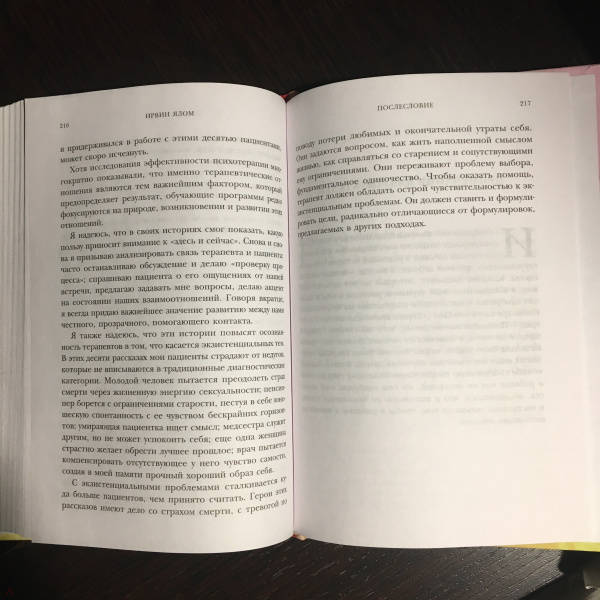 На мой взгляд, это - одна из лучших книг Ирвина Ялома. В свои почтенные 80 лет, автор достиг виртуозности в художественном описании процесса психотерапии! Мне кажется, что, как в русской литературе - А.С. Пушкин -"наше всё", так Ирвин Ялом - психотерапевт-писатель - классик жанра. Уверена, что только гениал...