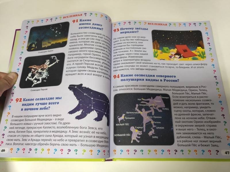 На страницах этой красочной книги вы найдете понятные и краткие ответы на самые разные темы из часто задаваемых малышами вопросов: от загадок Вселенной и окружающего мира до секретов таинственного мира динозавров, царства животных и строения человека. А ещё к каждому ответу есть яркая картинка, чтобы ребёнку было интересней получать знания.