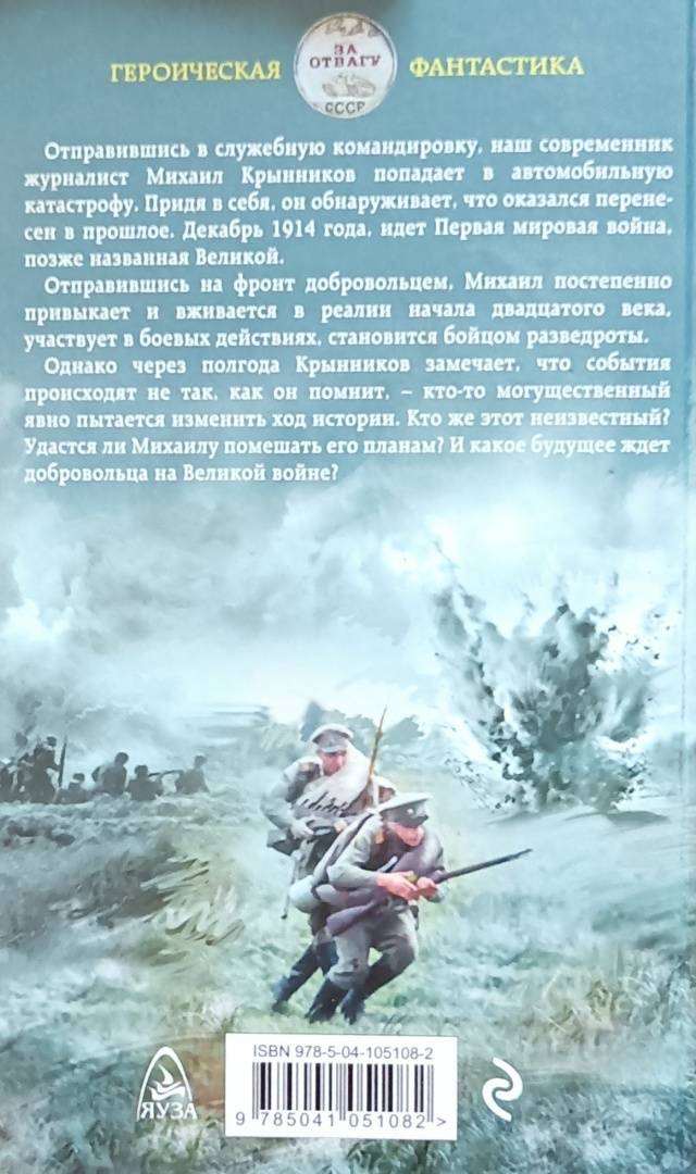 Однако через полгода Крынников замечает, что события происходят не так, как он помнит - кто-то могущественный явно пытается изменить ход истории. Кто же этот неизвестный? Удастся ли Михаилу помешать его планам? И какое будущее ждет добровольца на Великой войне?