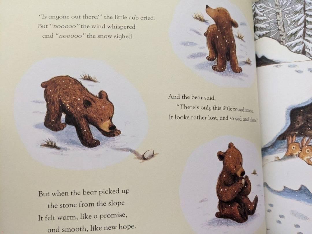 Little Bear has just woken up from his long winter sleep. But when he pokes his head out of the den, the world around him is vast, white and silent. The only thing he sees is a smooth little stone, just as alone in the snowy wilderness as he is. He nestles it in tight to his fur and off they go in search of friends.