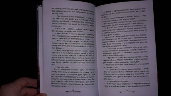 Даже не знаю с чего начать описывать свой восторг. Наверное, стоит начать с того, что книга просто невероятно красиво оформлена. Обложка начинает переливаться на свету, прекрасно подобранные цвета. Белые офсетные листы и крайне приятный шрифт для чтения.