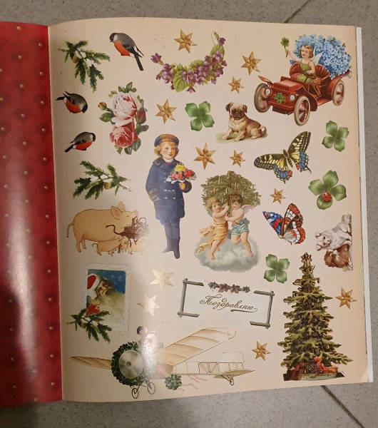 Изысканный новогодний альбом для вырезания и склеивания ёлочных игрушек - таких, какими украшали ёлки в начале прошлого века.