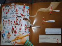 Эту книгу нам посоветовали дети друзей - у них польское издание, с картонными страницами, но плотной бумагой этого издания я тоже вполне довольна. Такой псевдонаучпоп о гномах, которые делают дырки в сыре и, конечно, всё прячут, в книге много производных от слова "гном", ребенок такой юмор ценит.