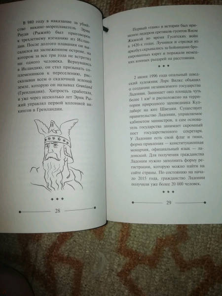Любопытная книжка, не энциклопедия, но занимательная в целом. В компании почитать, пообсуждать весело. Много фактов об известных всем вещах или людях. Скорее для молодого возраста, даже юного, после 30лет большая часть книги уже известна. Плотные газетных листы. Продукт из тех, что быстро затрепется.