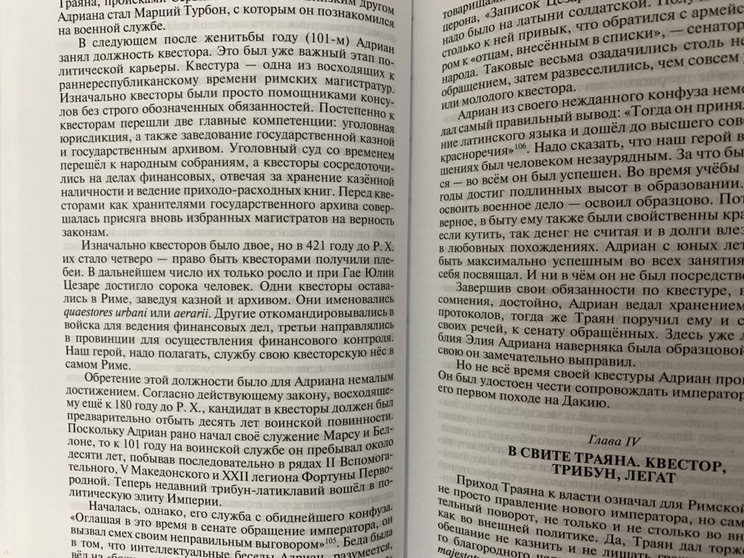 Плюсы: качество печати, иллюстраций, бумаги. Приятное оформление, хороший шрифт. И в целом спасибо, что написали книгу об Адриане.