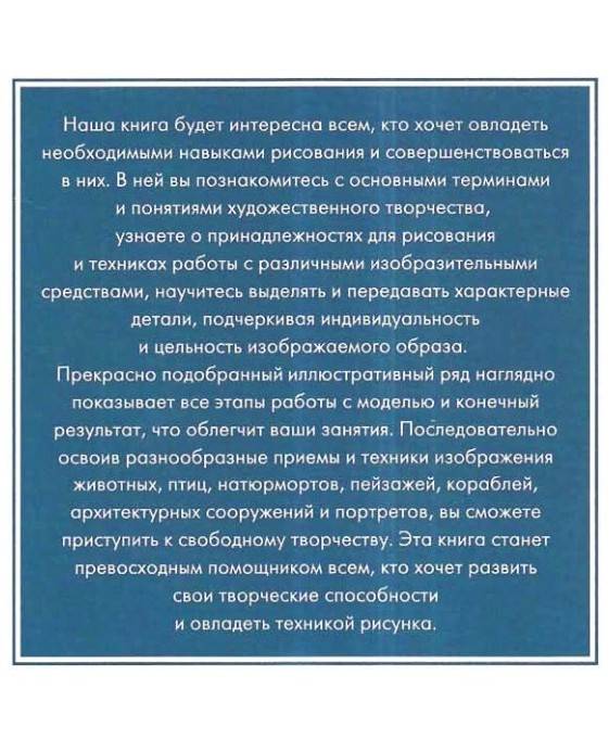 По этой книге, мы с сынишкой уже нарисовали лицо человека. При том, что я не умею рисовать, а мой Серёжка совсем не умеет рисовать, получилось по инструкции очень, даже красиво!!!! Мы рисовали портерет мамы. Удивительное издание, в нём собрано почти всё и как рисовать лицо , животных, пейзажи.. Вот только жаль про акварельные краски почти ни слова!!!