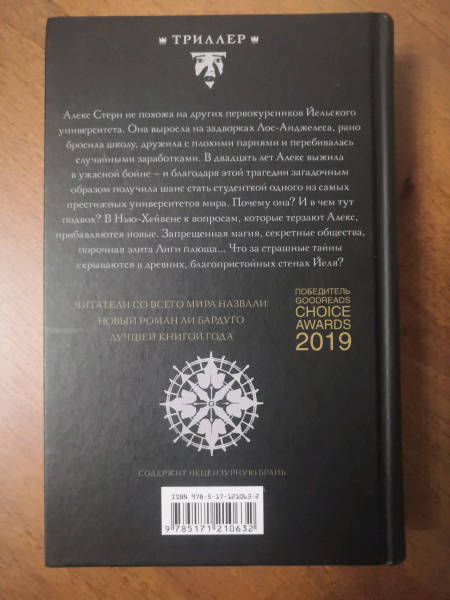 Алекс Стерн не похожа на других первокурсников Йельского университета. Она выросла на задворках Лос-Анджелеса, рано бросила школу, дружила с плохими парнями и перебивалась случайными заработками. В двадцать лет Алекс выжила в ужасной бойне - и благодаря этой трагедии загадочным образом получила шанс стать студенткой одного из самых престижных университетов мира. Почему она? И в чем тут подвох? В Нью-Хейвене к вопросам, которые терзают Алекс, прибавляются новые. Запрещенная магия, секретные общества, порочная элита Лиги плюща… Что за страшные тайны скрываются в древних, благопристойных стенах Йеля?