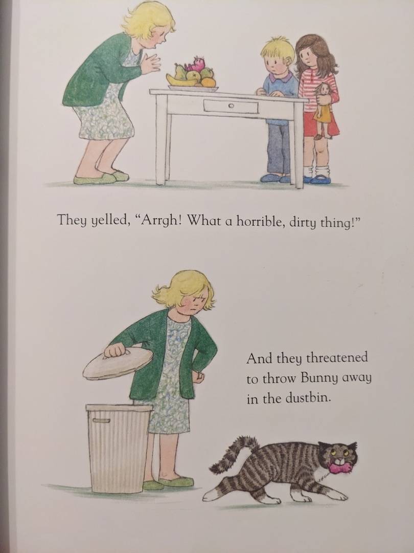 Bunny is Mog`s best thing – her favourite toy. But one day Mrs Thomas says she is going to throw Bunny in the dustbin, and then Bunny – and Mog – go missing…
