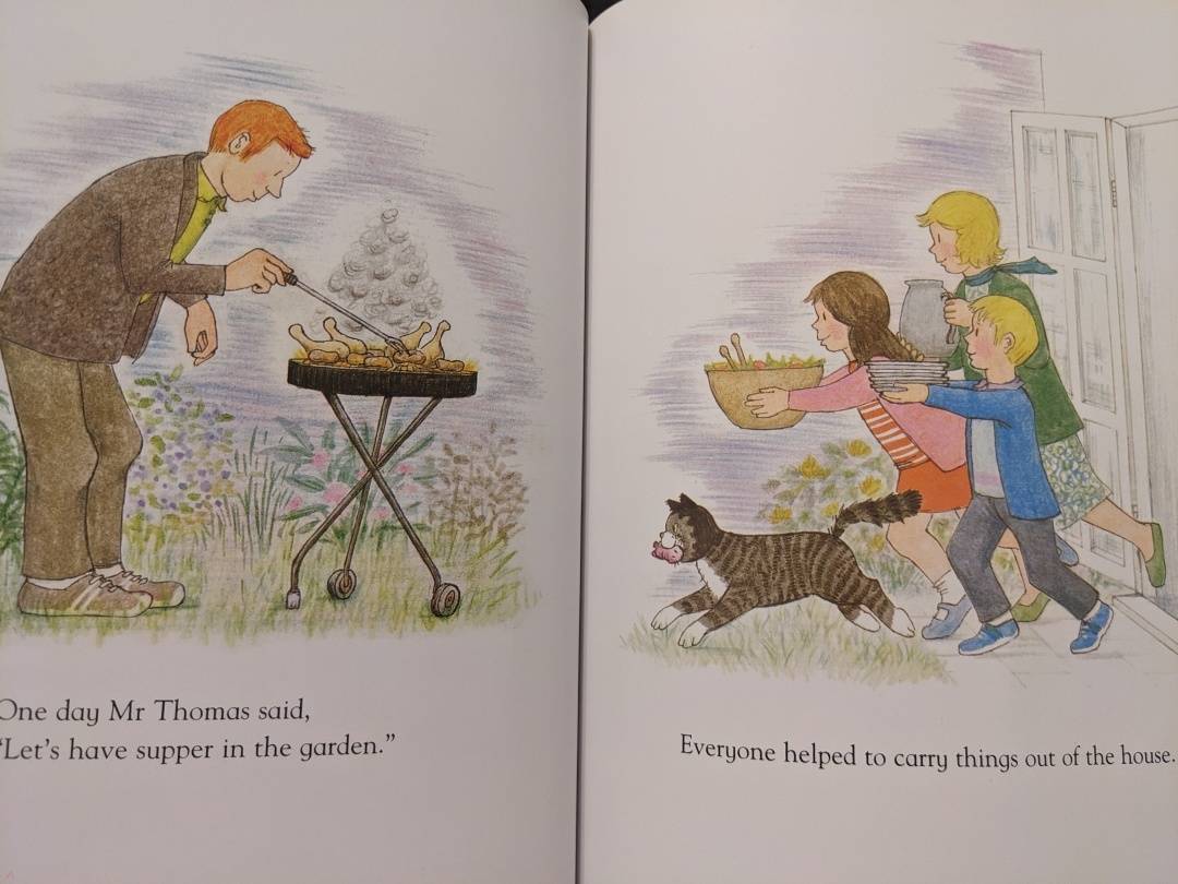 Истории про кошку Mog, в русском переводе Мяули, нам помогли перейти к более длинным историям после тонны книг с картинками. Книга написана в прошедшем времени, сюжет простой и понятен по картинкам.