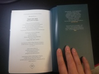 Плотная обложка с тиснением. Тонкая белая бумага, не просвечивает. Средний шрифт.