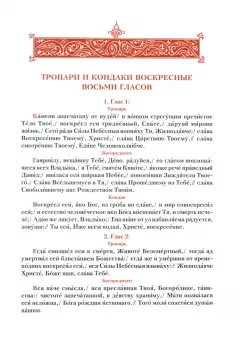Тропарион, подготовленный Евгением Кустовским, содержит тропари и кондаки Господские, Богородичные, святым угодникам Божиим, Небесным Силам Безплотным, воскресные, во всю седмицу, Триодей Постной и Цветной, на Страстной седмице, а также праздникам Церкви. Издание большого формата, напечатанное в два