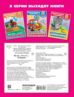 "Му-му. И-го-го. На ферме" - развивающая книжка со стикерами, которые много раз можно наклеивать на страницы. Малыш познакомится с обитателями фермы, сможет своими руками дополнить картинки стикерами. Такое увлекательное занятие поможет ребёнку потренировать пальчики, развить память, внимание, креативное мышление, речь, а также подарят маленьким и взрослым возможность провести время весело и с пользой.