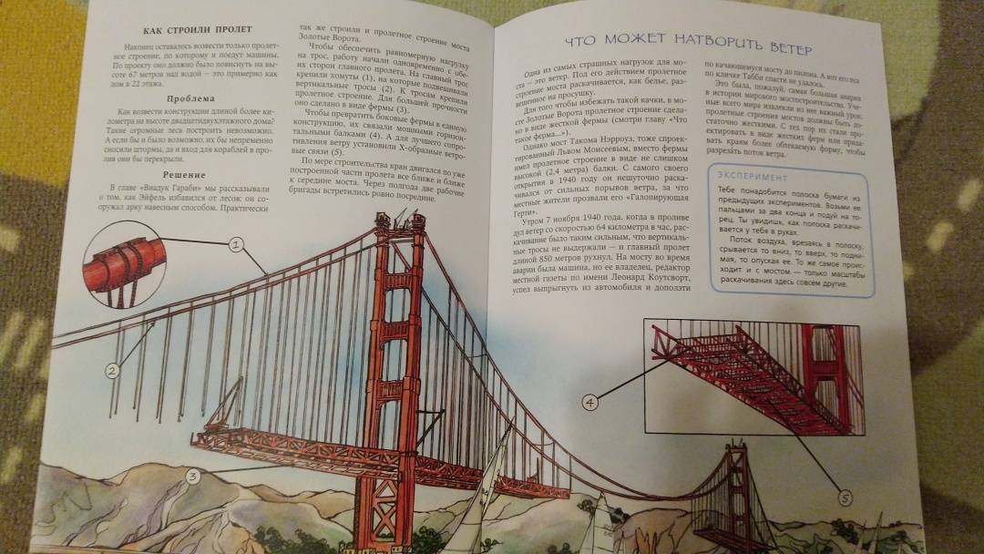 Восторг! Прочли бы и за 1 присест, если бы у меня голос не сел))). Все основные конструкции мостов описаны понятным языком! Сын 8 лет увлекся так, как редко бывает. Книга очень-преочень интересная - для нас обоих, а кое-что еще и бабушке почитали. И очень хорошо структурирована - прямо как супер-конспект - все очень ч...
