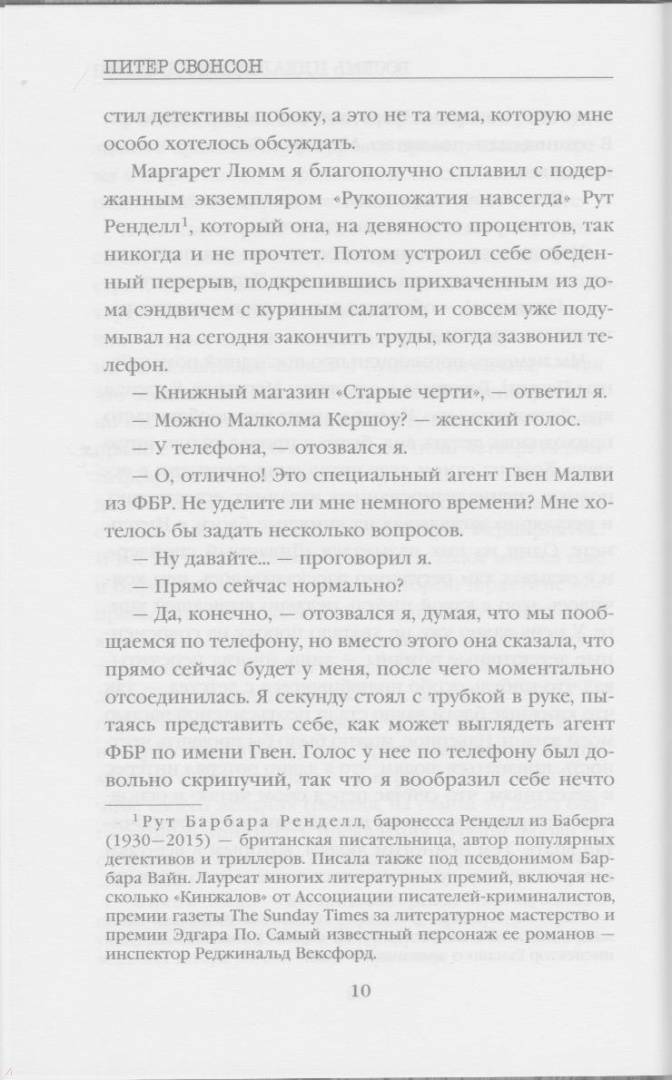 А теперь в его магазин пришла с визитом агент ФБР. Кто-то начал серию странных, практически необъяснимых убийств, и она уверена, что преступник действует строго в соответствии со списком Малколма, стремясь воплотить в жизнь сюжет каждого из романов. Более того, в ФБР полагают, что убийца хорошо знает Кершоу - и старается подставить его. Как ни крути, а автор списка сейчас стал главным подозреваемым. Более того, до совершения всех восьми "идеальных убийств" пока еще далеко… Кто станет следующей жертвой?
