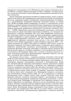 Рассмотрены основные протоколы, используемые в оптических сетях, вопросы тестирования систем, методы передачи информационных потоков. Большое внимание уделено аппаратуре цифровой иерархии, вопросам уплотнения, оптическим сетям доступа. Рассмотрены новые пассивные и активные элементы сетей, отечестве