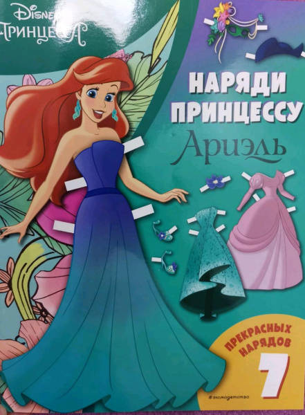 В этой книге про Русалочку, пожалуй, самые красивые и функциональные костюмы. Они разные, можно соединять верх и низ с разных страниц. Да и сама русалочка самая позитивная из всех. А еще она как будто в движении, т. к. волосы смещены назад.