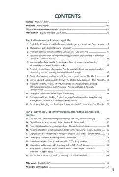 This book showcases cutting-edge theory and practice in the development and integration of 21st century skills in the language classroom. Well-known ELT experts as well as teacher educators, practitioners and leaders from around the world explore how creativity, collaboration, critical thinking, inclusion, wellbeing, leadership, and other key new literacies can be developed in both formal and informal learning contexts. The book brings seasoned and novice teachers, trainers, researches and policy makers up to date with developments in this increasingly important field in language education.