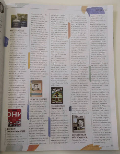Основное наполнение журнала - рецензии на книжные новинки. В каждом номере представлено около 50 рецензий.