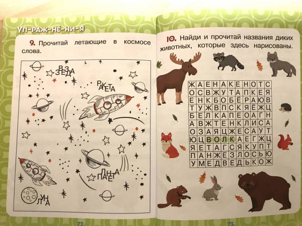 Отличная книга для обучения чтению! крупный шрифт,прекрасные иллюстрации,в конце упражнения. Немного огорчила обложка,она не совсем твердая,плотный картон.Рекомендую!