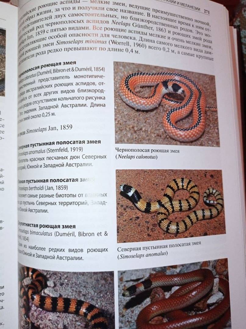 Змеиные яды делятся на нейротоксичные, гемотоксичные, миотоксичные и цитотоксичные. И у каждого своё специфическое действие. Для солидного полезного издания на эту тему надо было бы обязательно упомянуть к какому виду яда относится яд той или иной змеи. А так это просто альбом с картинками. Надеюсь в переиздании (если...