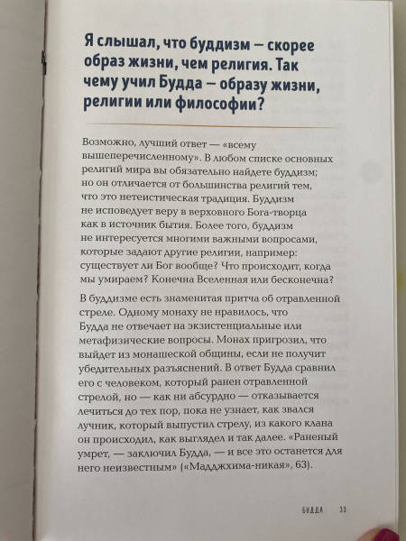 Очень понравилось, вкратце или вводная информация о буддизме, кто заинтересован. Просто все темы не раскрыты широко, а так для ознакомления. Очень доступным и понятным языком все написано. После этой книги купила уже более сложную, Далай Ламы XIV.