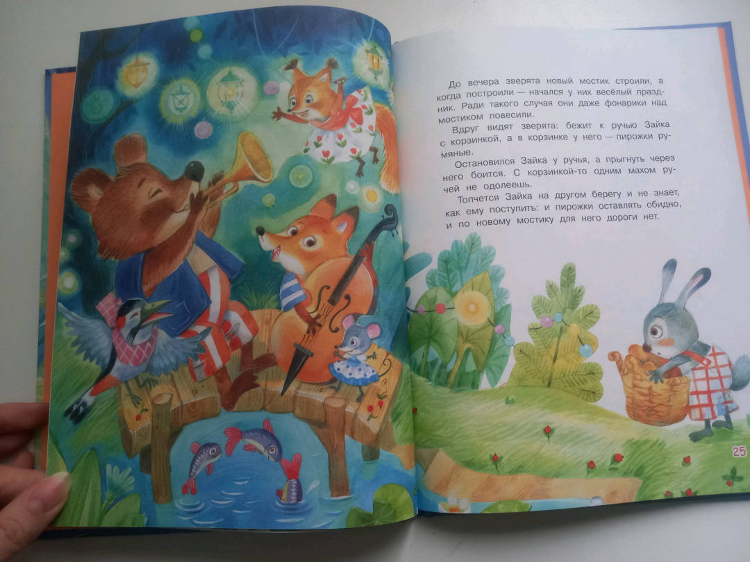 Книга невероятно красивая, иллюстрации душевные и красочные, просто наземные и сказочные! И очень подходят этим милым сказкам, добрым, красивым, оставляющи впечатление лёгкости и детской радости. Сказки короткие, от 2-3 лет и до школы