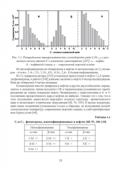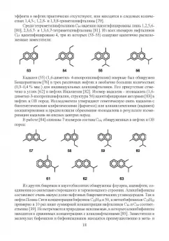 Описаны способы и приемы выделения и исследования ароматических углеводородов нефтей и рассеянного органического вещества пород. Приведены новые данные о составе и химическом строении алкилпроизводных бензола, нафталина, бифенила, антрацена, фенантрена и бифенилалканов, полученные с применением всей