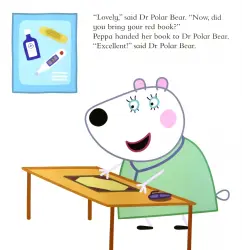 Peppa is visiting Dr Polar Bear for her health check and to get a vaccination. Vaccinations protect us and those around us.