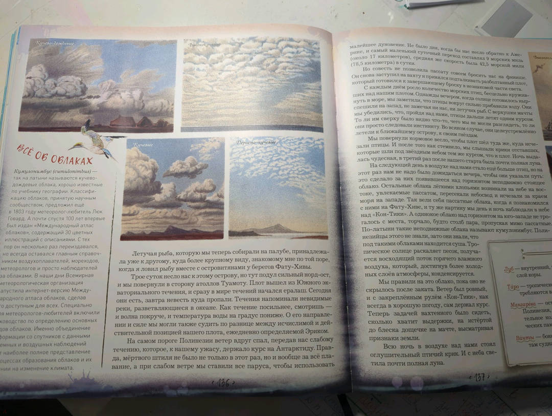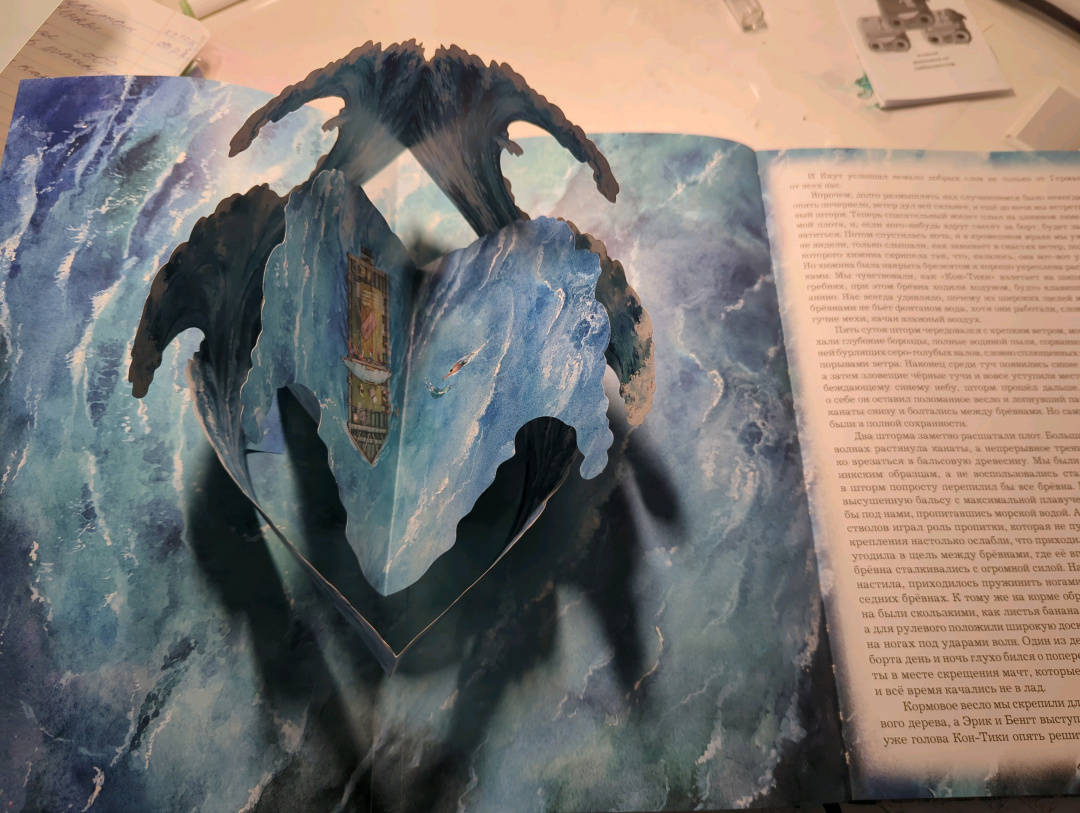Я не ребенок, но испытала детский восторг от прочтения книги . В ней прекрасно все - иллюстрации, кармашки с сюрпризами, комментарии , которые не перегружают текст и само произведение . Ощущение, что ты сам на этом плоту. Спасибо большое создателям книги