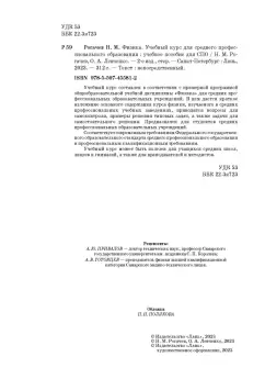 Учебный курс составлен в соответствии с примерной программой общеобразовательной учебной дисциплины «Физика» для средних про-фессиональных образовательных учреждений. В нем дается краткое изложение основного содержания курса физики, изучаемого в средних профессиональных учебных заведениях, приводятся вопросы для самоконтроля, примеры решения типовых задач, а также задачи для самостоятельного решения. Предназначен для студентов средних профессиональных образовательных учреждений.