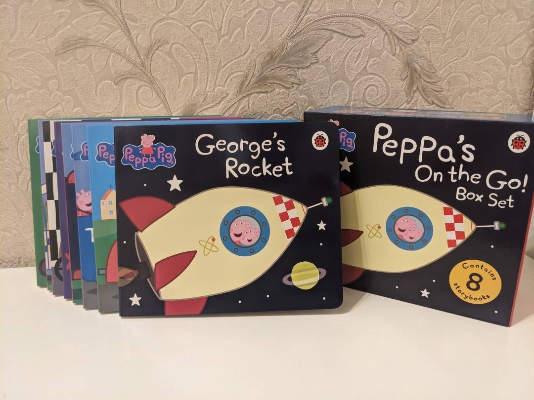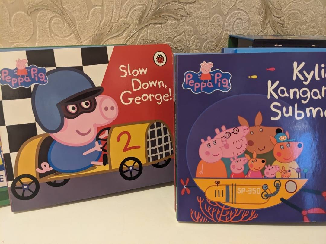 8 историй для фанатов Пеппы и её братца Джорджа. Картонные книги в удобном коробе для хранения. Книга про полицейского отлично отражает мультфильм вкратце.