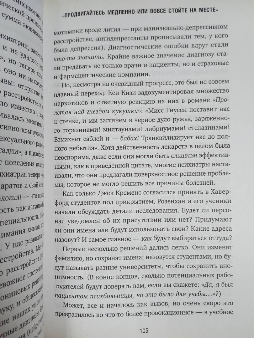 "Сейчас, когда я пишу эту книгу, не существует каких-либо объективных последовательных методов постановки точного психического диагноза: депрессию не диагностируют по анализу крови, а шизофрению - по снимку мозга. Вместо этого психиатры полагаются на наблюдаемые симптомы в сочетании с анамнезом паци