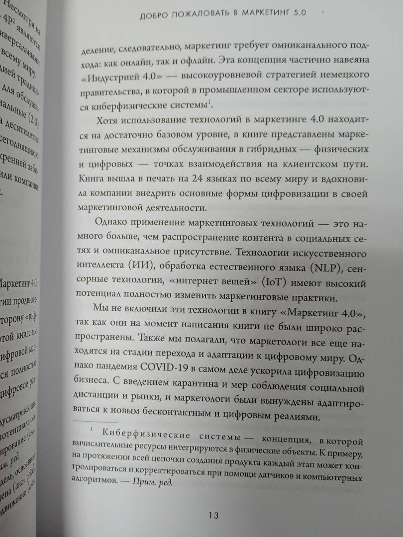 "Когда меня спрашивают, кого прочитать по маркетингу, я всегда отвечаю - Филипа Котлера. В книге вы найдете примеры того, как маркетинг работает на основе цифровых алгоритмов, ИИ, интернета вещей, Big Data и дополненной реальности. Отдельно разъяснено, чем отличается продвижение для бумеров и зумеров. Это база, которой не хватало, - причем с понятными схемами и графиками. Рекомендую!" - Павел Гуров, техблогер и маркетолог. Создатель телеграм-канала @gurovdigital и одного из самых популярных российских подкастов 2019 года