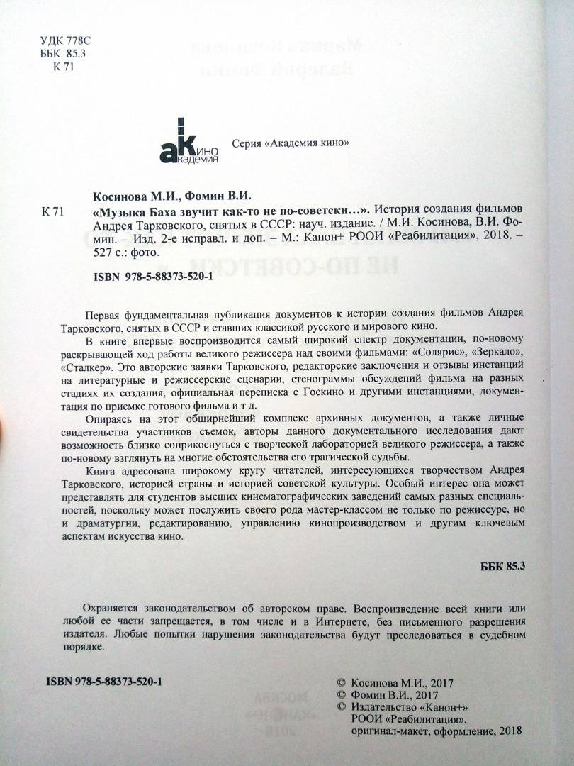 Книга «Музыка Баха звучит как-то не по-советски...» адресована широкому кругу читателей, интересующихся творчеством Андрея Тарковского, историей страны и историей советской культуры. Особый интерес она может представлять для студентов высших кинематографических заведений самых разных специальностей, поскольку может послужить своего рода мастер-классом не только по режиссуре, но и драматургии, редактированию, управлению кинопроизводством и другим ключевым аспектам искусства кино.
