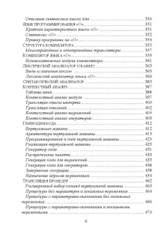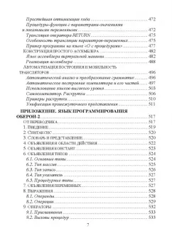 Вторая тема книги - конструирование компиляторов. Обсуждаются все элементы транслятора и этапы реализации языка от спецификации до формирования машинного кода.