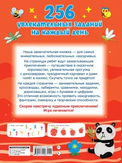 "256 увлекательных заданий на каждый день" - много-много забавных головоломок, сравнилок, дорисовашек, бродилок. Предложите ребёнку угадывать зашифрованные слова, сравнивать картинки в поисках отличий, проходить лабиринты, решать логические задачки - такие интеллектуальные занятия расширяют кругозор