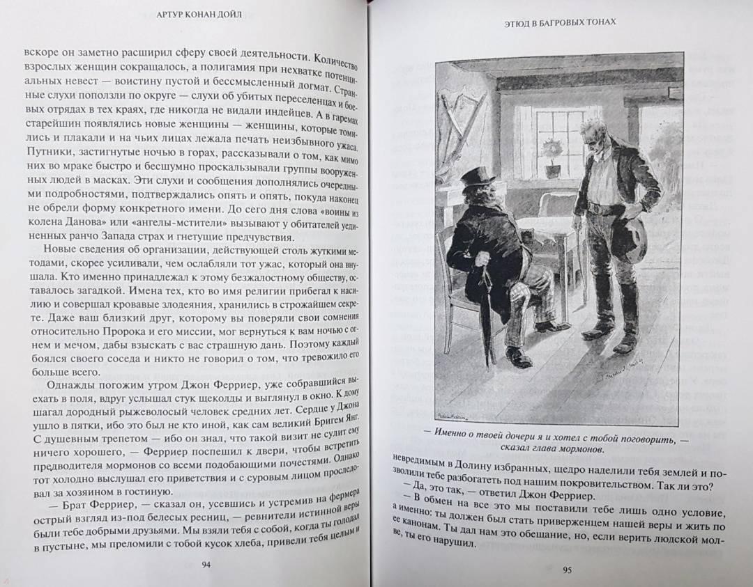В книгу вошли интересные повести "Этюд в багровых тонах" и "Знак четырех". Издание качественное, с плотной обложкой и черно-белыми иллюстрациями.