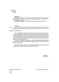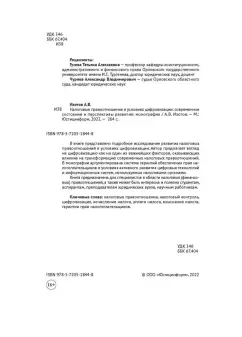В книге представлено подробное исследование развития налоговых правоотношений в условиях цифровизации. Автор предлагает взгляд на цифровизацию как на один из важнейших факторов, оказывающих влияние на трансформацию современных налоговых правоотношений. В монографии аргументирована система гарантий обеспечения прав налогоплательщиков в условиях активного развития цифровых технологий и информационных систем, используемых налоговыми органами.