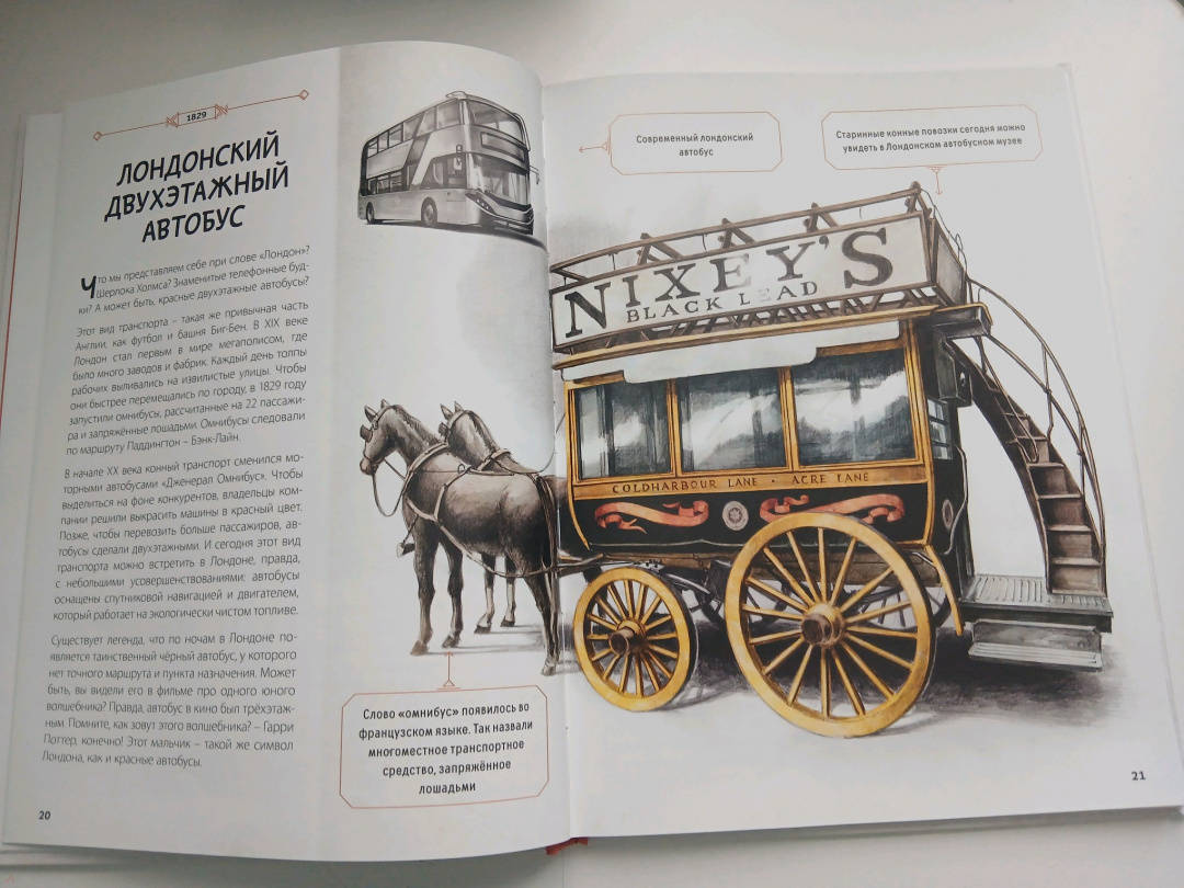 Отличная книга, обязательно понравится любителям транспорта. Очень красиво оформлена, иллюстрации прекрасные, современные, но в духе того времени. Написана интересно, не просто сухие факты, как в энциклопедиях, а полноценные рассказы о том или ином чуде техники. Сыну почти 7 лет, книга понравилась, после прочтения уже...
