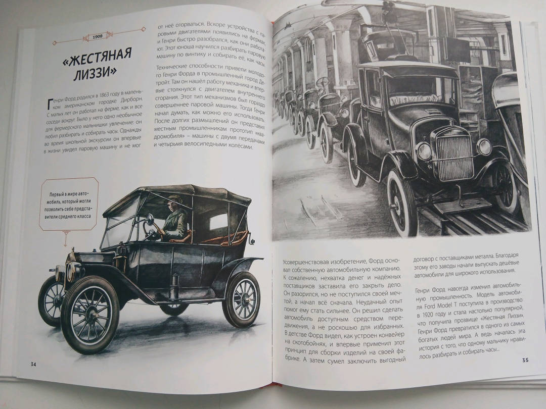 Интересное по содержанию, информативное и при том ШИКАРНОЕ по оформлению издание. Есть много книг на тему транспорта, истории открытий/изобретений, по строению, однако - данная книга подходит к вопросу с иного ракурса. Читается легко, иллюстрации цепляют даже малыша, а дети старше хотят перерисовать иллюстрации (на ст...