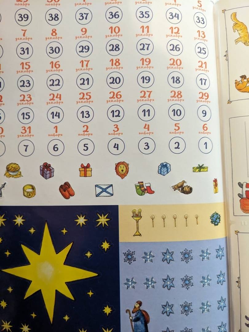 Отличный календарь для подготовки к Рождеству! Есть праздники, которые празднуются в декабре - январе в течение Рождественского поста. Есть задание на каждый день. И к ним же накелейки. Детям понравилось!