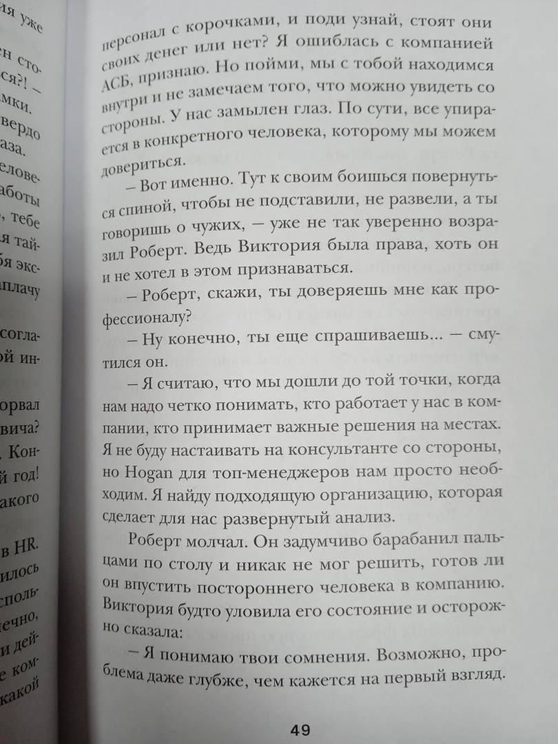 Алексею Слободянюку удалось создать увлекательный и динамичный роман-тренинг, органично встроив в сюжет методики ведения стратегических сессий, анализ потенциала и мотивации, развитие компетенций, повышения вовлеченности персонала и многое другое.