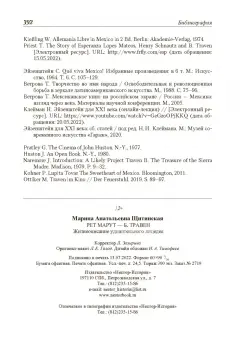 "Рет Марут - Б. Травен. Жизнеописание удивительного лицедея" - вторая книга М. Щитинской, посвящённая этому автору, и первое в России полное, насколько это возможно, жизнеописание человека, "который был Б. Травеном". Писатель сам, а за ним и многочисленные искатели приключений создали миф о "всемирн