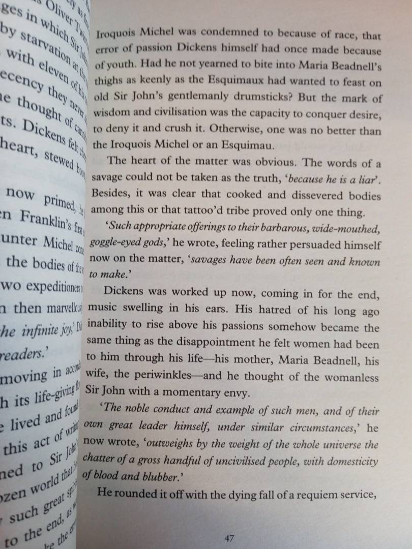 Dickens responds by staging a play in which he takes the leading role as Franklin, his symbol of reason`s triumph, only to fall in love with an eighteen-year-old actress. As reason gives way to wanting, the frontier between civilisation and barbarity dissolves, and Mathinna, now a teenage prostitute, goes drinking on a fatal night.