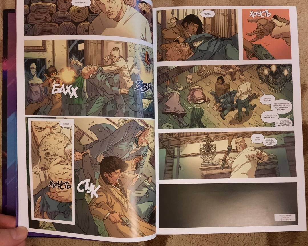 Бумага, печать, оформление, цветопередача всё выполнено отлично. В конце книги есть арты с вариативными обложками, наброски, фрагменты проработки персонажей и раскадровки сценариев, реклама Титан комикс с при...